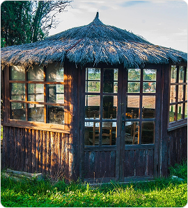 Застекленная постройка — это не только комфортно и удобно, но еще и эстетично. Можно подбирать различные материалы — алюминий, дерево, пластик, которые будут гармонично сочетаться с фасадом и кровлей. Кроме этого, можно выбирать окна с цветными каркасами и стекла с узорами. Сегодня доступны разные варианты остекления беседки, которые позволяют подобрать решение под любой стиль и бюджет.